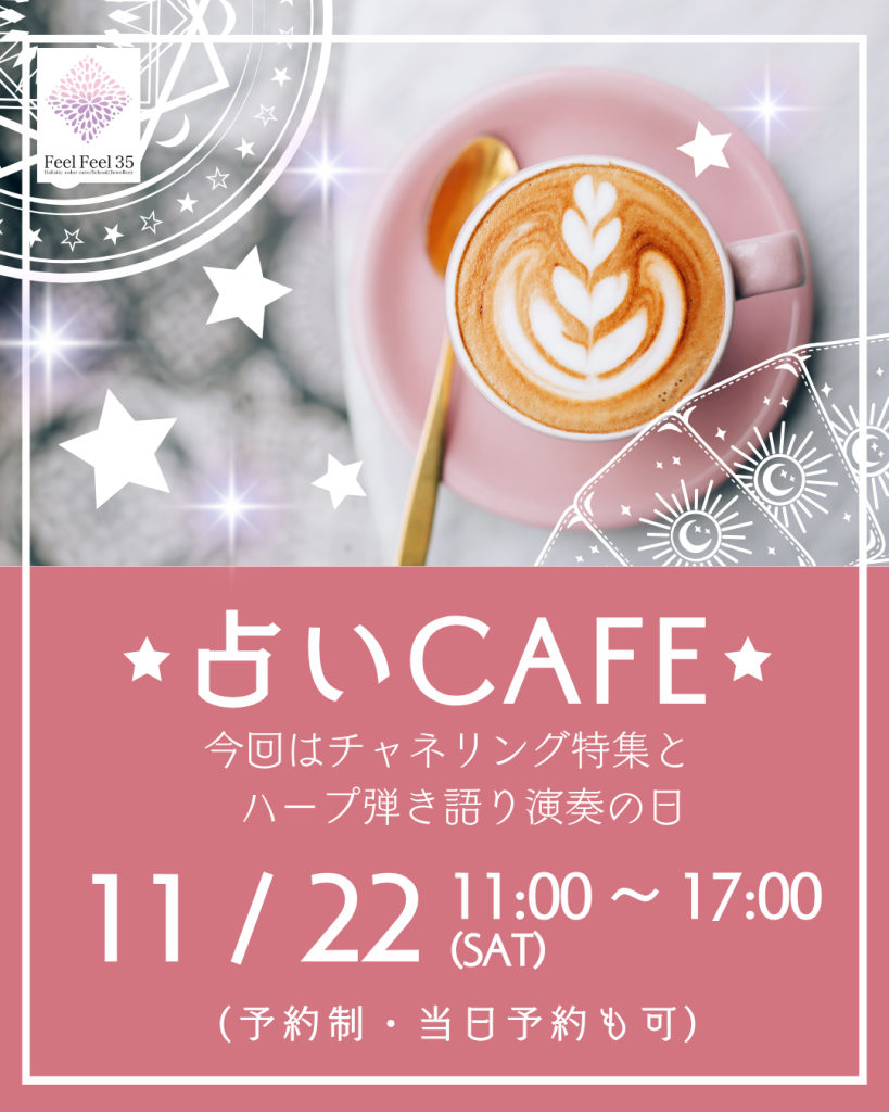オーラソーマのお店として 皆様にご利用していただいているFeelFeel35が、 この日だけ限定で占いカフェ☕️になります😆💕 今回はチャネリング特集とハープ演奏です!