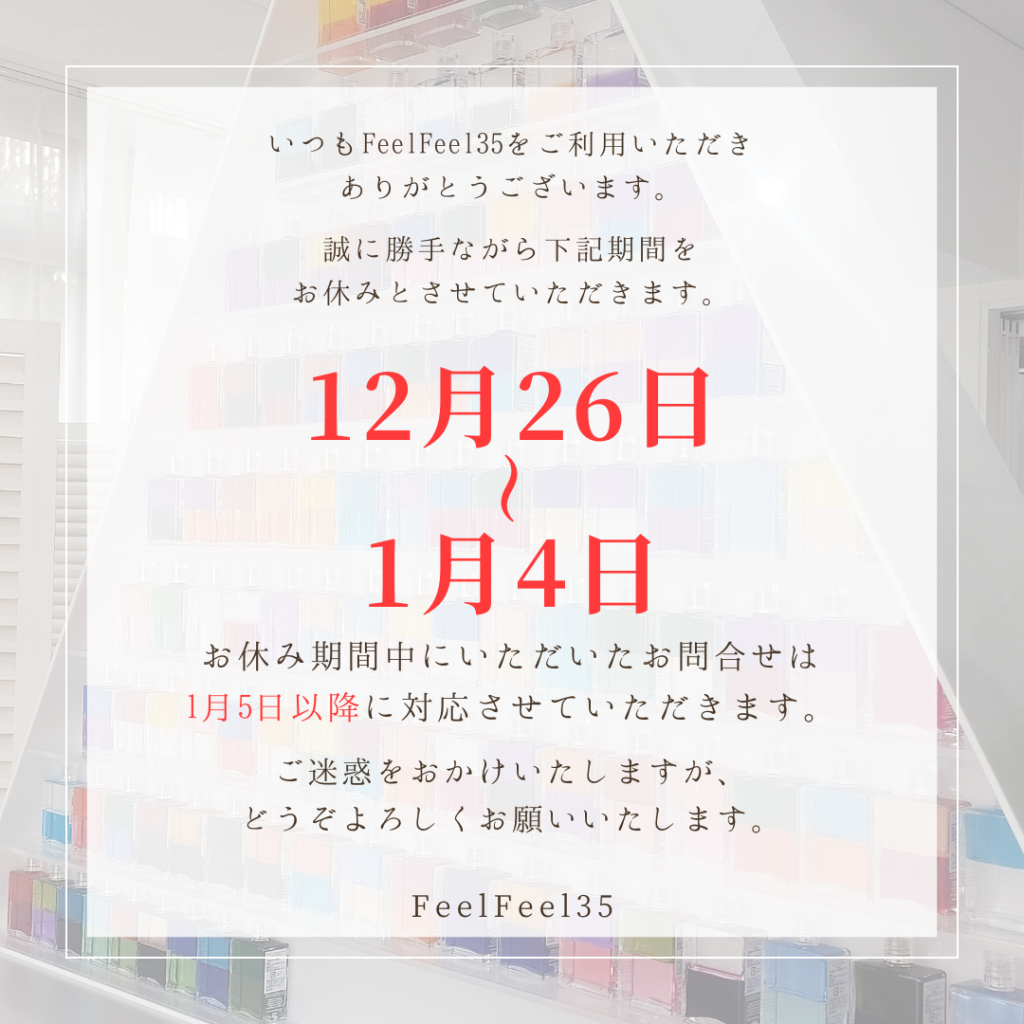 お休み期間中に頂いたお問い合わせは1月5日以降にご対応させていただきます。